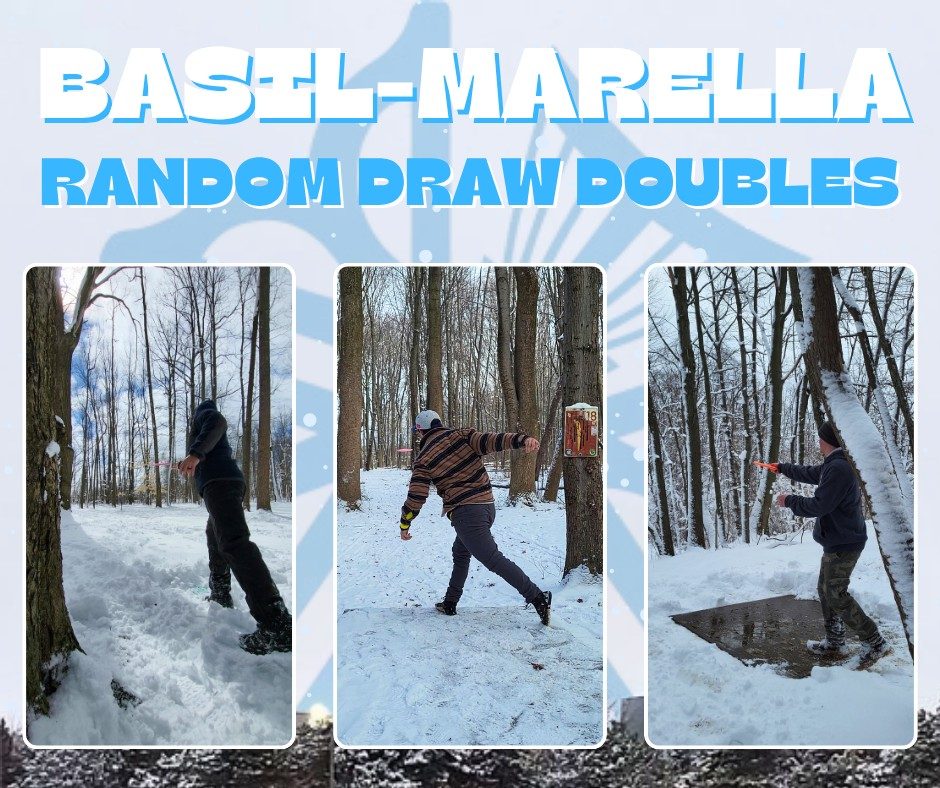 This is a random doubles handicap league with no divisions, played Saturday mornings at Basil Marella DGC. This is a fun league with a little bit of competition mixed in. All are welcome…our handicapping system, coupled with the short but technical layout Basil offers, allows players of all skill levels to compete and contribute to their team.