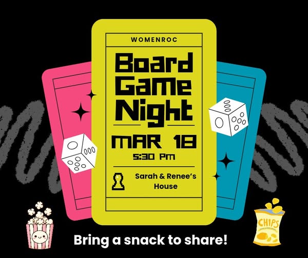 We have lots of fun activities coming up. Hope to see you at them! Stay updated by signing up for the WomenROC newsletter or checking out our WomenROC Facebook page